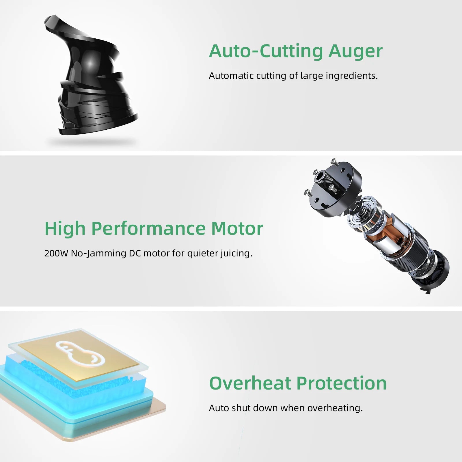 Powerful 200W Motor – Delivers efficient juice extraction with less clogging.